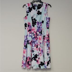 DKNY Light Blue Sleeveless fit and Flare Floral Dress Size 12