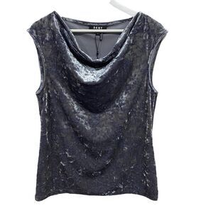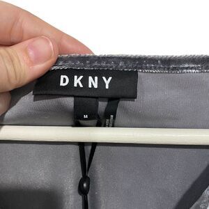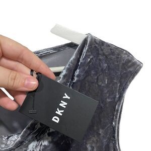 DKNY New sleeveless velvet feel drape front medium gray two toned look