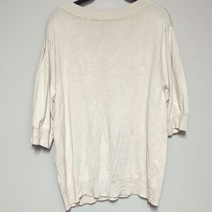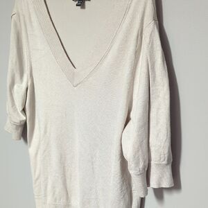 Elegant DKNY pullover with a relaxed V-neck. Soft off-white hue.