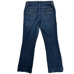 Flattering and slimming DKNY jeans in the Soho Boot cut and indigo blue wash. A classic bootcut with body-enhancing stretch by DKNY. EUC Size 6 hemmed at 30” inseam.