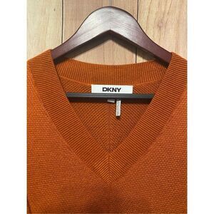 DKNY Small rust red/orange pullover Flange Sweater women’s top v-neck