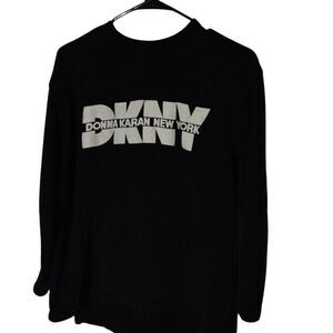 DKNY Sweatshirt Black has small blemish see pic in graphic which reflects in the price. Measurements P2P-20" Length 21" Like New