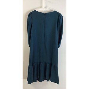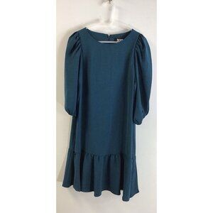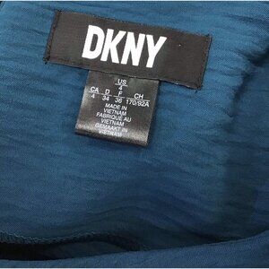 The DKNY Teal Blue Long Sleeve Chiffon Shift Dress in size 4 is a stylish and versatile piece for any occasion. Made from lightweight and breathable polyester chiffon, this knee-length dress features a round neck, 3/4 balloon sleeves, and a solid teal color. Perfect for travel, weddings, parties, or casual outings, this dress offers a flattering silhouette with its shift style. Ideal for all seasons, this dress combines a touch of elegance with a comfortable and easy-to-wear design, making it a must-have addition to any wardrobe. Gently loved lots of life left. 🩵