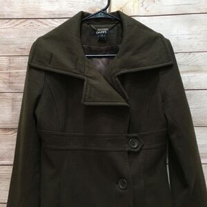 EXCELLENT CONDITION DKNY WOOL COAT IN OLIVE GREEN