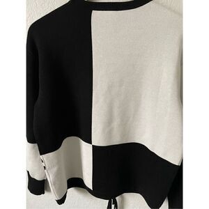 This color block sweater was a gift but runs large and didn’t fit me. It is somewhere between small and a medium.