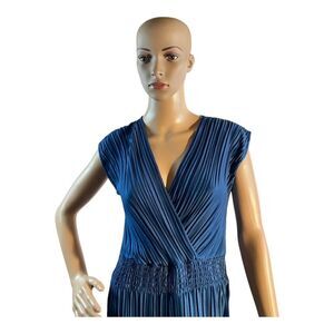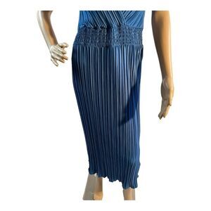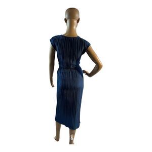 DKNY Women’s Blue Satiny accordion elastic waist sleeveless midi Dress Size 8