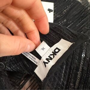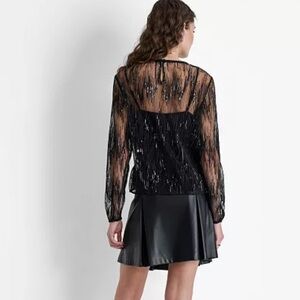 Add a touch of elegance and texture to your work wardrobe with this DKNY women's sequin crinkle tulle top, perfect for effortlessly elevating any outfit with its sparkling, modern flair.