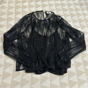DKNY Women's Crewneck Sequin-Tulle Long-Sleeve Top