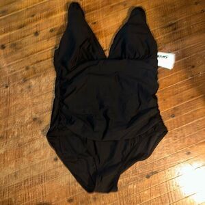 DKNY black tummy control XXL Trangle Halter One Piece Swimsuit