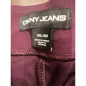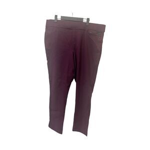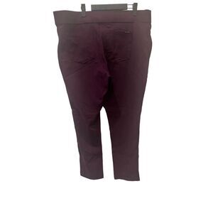 Deep purple pull on skinny trouser pant, lots of stretch, faux front pockets, zip faux pocket, back pockets. Wide waist band. Size XXL