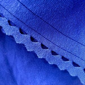 This elegant cobalt blue dress from **DKNY** effortlessly combines simplicity with a touch of flair. The standout feature is its striking bell sleeves, accented with delicate scalloped trim that adds a hint of playful charm. The clean, fitted silhouette flatters the figure, while the scoop neckline keeps it classic and understated. Perfect for both daytime outings and evening gatherings, this dress can be easily styled up or down. Pair it with statement jewelry and heels for a polished look, or keep it casual with flats and minimal accessories for a chic, everyday vibe. The rich blue hue brings vibrancy and sophistication to your wardrobe!