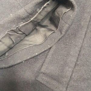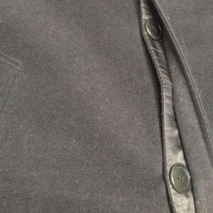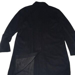 Wool/cashmere blend mid length men’s coat. Black. No size tags. Coat has some flaws(see pictures)