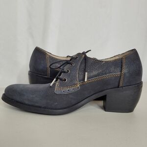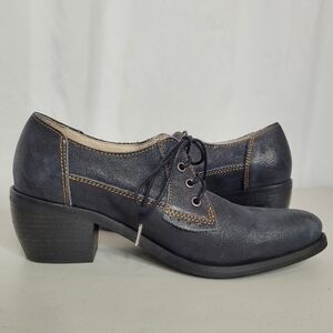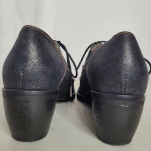 DKODE Women's Block Heel Lace Up Ankle Bootie Blue Leather with Shimmer - 8.5