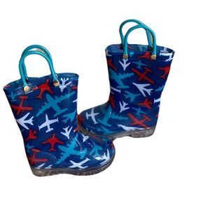 DKSUKO Toddler Light Up Rain Boots Waterproof Rubber With Easy Handles Size 5