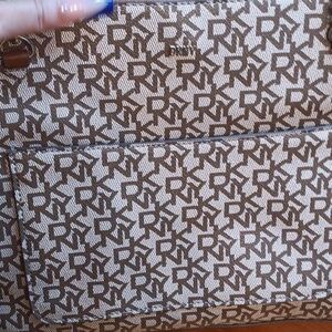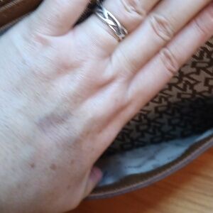 Elevate your style with this chic designer women's bag. Featuring a sophisticated brown pattern, this bag is perfect for any occasion. The elegant design and quality craftsmanship make it a must-have accessory. used some light fraying on handle, inside looks good!