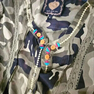 Very nice D & L camouflage dress. Size Large. 52 inches long. 42 inches wide at the bottom.