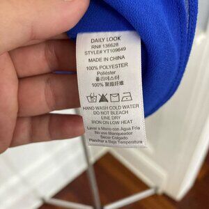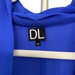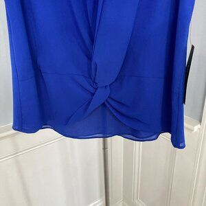 DL Daily Look royal blue sleeveless sheer layered v neck knot tie blouse top M