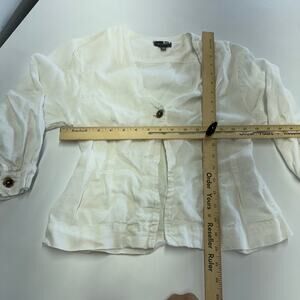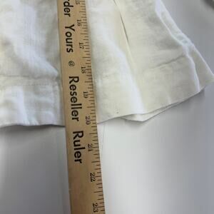 White linen (100% Linen). Top. Short sleeves. V-neck. Front button closure. 19" from shoulder to hemline. Imported.