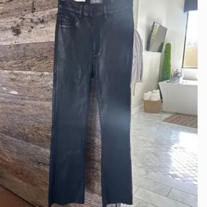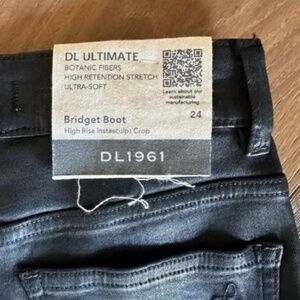 DL1961 Bridget Boot High Rise Intrasculpt Crop Jeans in Black Coated Raw