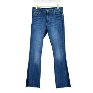 DL1961 Bridget Instasculpt Newbury Contrast Wash High Rise Raw Hem Bootcut Jeans