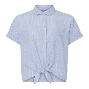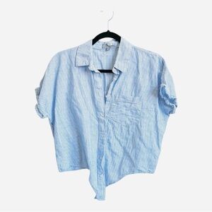 DL1961 Chrystie Street Top Blouse Tie Front Blue White Stripe Linen Blend Size M