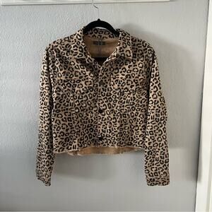 NWT. Leopard print denim jacket.
