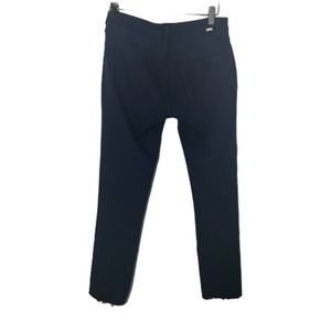 These jeans have been hemmed and have a raw/distressed hem. Please see last two pictures (they are still really cute).