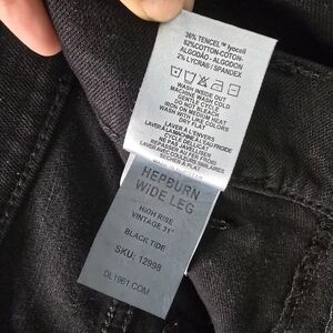 DL1961 DL Vintage Hepburn Wide Leg High Rise Black Tide Jeans. Denim, belt loops, button zipper closure,