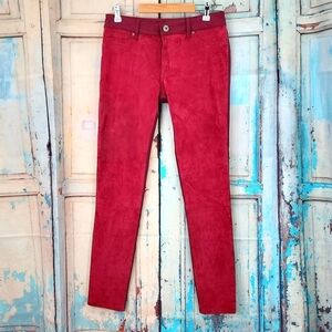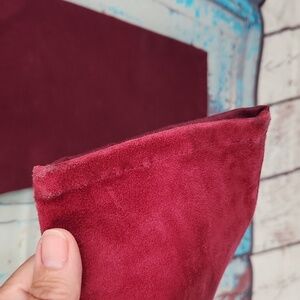 Cranberry wine color lam leather inerlinning backed in a stretch cotton material.