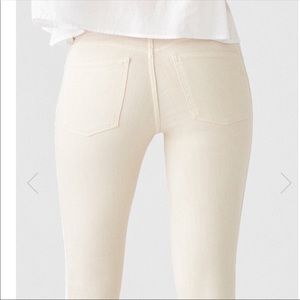 DL1961 FLORENCE CROPPED MID RAISE BEIGE JEANS,SKINNY WITH INSTANTSCULPT FIT AND WHITE STRIPES IN BOTH SIDES