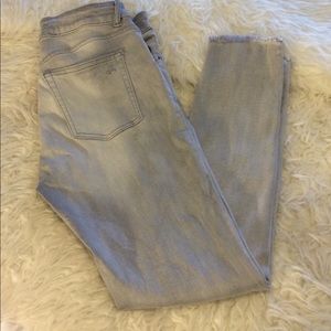 These jeans are so comfortable and such a transitional color! Only worn once and the perfect grey jean. This is a mid rise fit that hits slightly above the ankle!