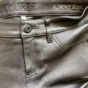 DL1961 Florence Skinny Mid Rise Instasculpt Ankle Leather Pant Poseidon Black 30