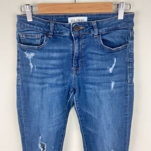 DL1961 Florence Instasculpt Lightly Distressed Frayed Hem Jeans in Strive