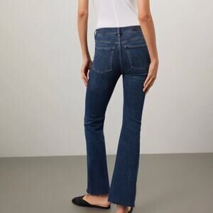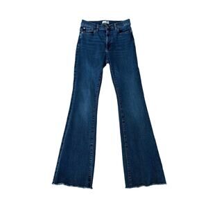 DL1961 Fray Flare Jeans SIZE 26 Dark Wash Bridget Raw Hem Designer Stretch $209