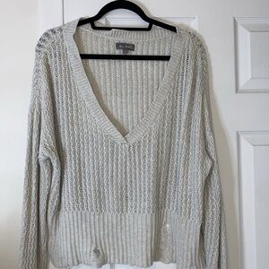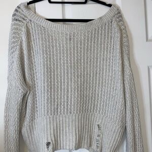 Creamy color with trendy rips in sleeves and bottom
