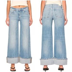 DL1961 Hepburn wide leg cuffed jeans in light medium wash