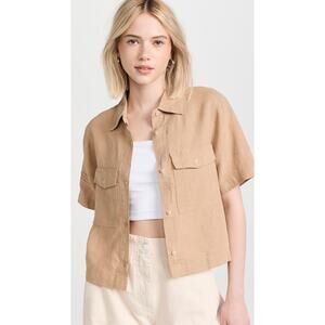DL1961 Khaki Tan Short Sleeve Button Front Montauk Shirt in size Medium combines classic style with modern utility. Crafted from high-quality materials, this shirt features a button-front closure and dual flap pockets for a touch of practicality and design interest. The khaki tan hue offers versatility, making it easy to pair with various wardrobe staples. With short sleeves and a relaxed fit, it's ideal for warm-weather wear, whether layered over a tank or styled on its own. Perfect for casual outings or as a polished addition to everyday ensembles.