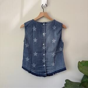 DL1961 Leah Top Sleeveless Top in Indigo Star Button Down Back Chambray Denim L