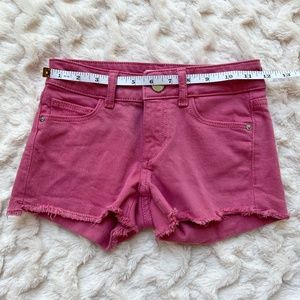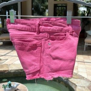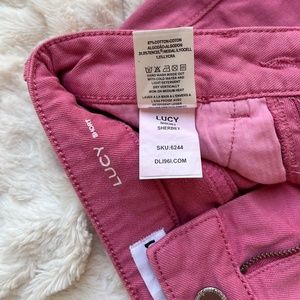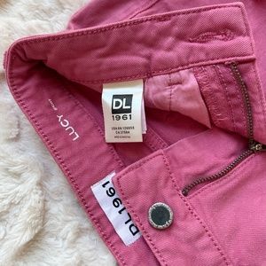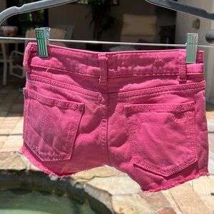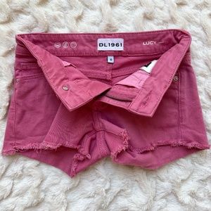 DL1961's Lucy Girls Shorts are designed as a classic pair of girls denim shorts in a vibrant pink that just needs a white or black shirt to complete the outfit.
