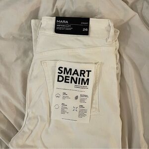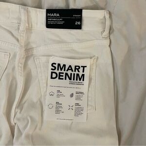 Celeb loved jean brand- Mara instasculpt straight jeans in the color milk. Never worn. I’m a true 26 and these were big on me. They’re super soft and stretchy and they will snatch you!! Likely better fit for a 27/28! I also can’t seem to find these jeans in this color online for less than 107.