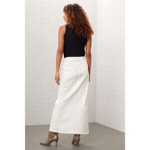 The DL1961 Off-White Asra Ecru Maxi Skirt in Size 27 offers a sleek and sophisticated silhouette with a modern twist. Crafted in a soft, structured fabric, it features a front button closure and a center slit for added movement and edge. The off-white ecru tone provides a clean, neutral base that pairs effortlessly with any top. Designed with a flattering high-rise fit, this skirt enhances the waist while maintaining comfort. Subtle stitching details add refinement to the minimalist design. Perfect for both casual and elevated looks. A versatile staple for year-round styling.