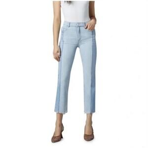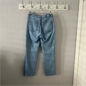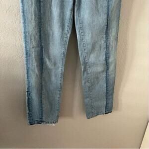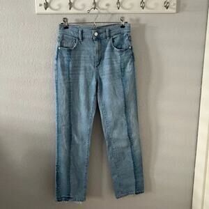 In good preowned condition. Soft, two-toned denim. High rise. Straight leg.