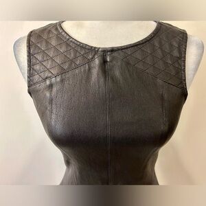 This top is beautifully made! It’s crafted with French stretch lamb leather. Quilted detailing at shoulders. Darting to provide a lovely shape down to the peplum waist! In the back, it has a silk mesh panel and full zip closure. It’s in excellent pre-owned condition! Size XS