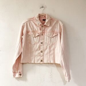DL1961 Shawn Cropped Boyfriend Denim Jacket in Blush Pink Small