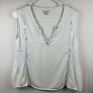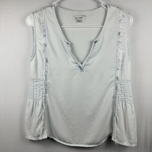 DL1961 Sleeveless Blouse XS Light Wash Denim Look Frayed V-Neck Boho Top