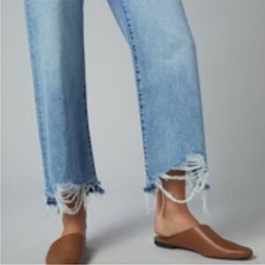 Adorable high waisted cropped jeans by DL1961. Zipper and button fly. Raw chewed hem. Color is a medium blue denim called Slate. Small mark on the leg as shown. Otherwise great preowned condition. Women’s size 25 (0).