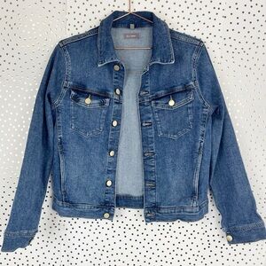 DL 1961 Vika jacket classic denim in Seaborn. Vika is a classic denim jacket that is straight through the body and falls at the hips. 93% Cotton, 6% Polyester, 1% Spandex. Size small.
