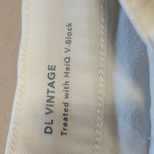 DL1961 Vintage, Size 29 "Patti" High Rise Straight Leg Ankle Raw Hem Jean in Ecru Color. Gently Used Condition. No Holes, Rips, Stains or Snags. Classic 5 Pocket Styling with Zipper Fly and Button Closure. Please refer to measurements in photos to ensure proper fit.
