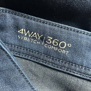 Features: Dark blue/navy, 4-way stretch, back pockets, non-functional from pockets, button/zipper closure, mid-rise