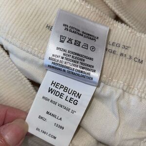 DL1961 Womens Hepburn Wide Leg High Rise Vintage Corduroy Pants Manilla Cream Sz 32 NWT